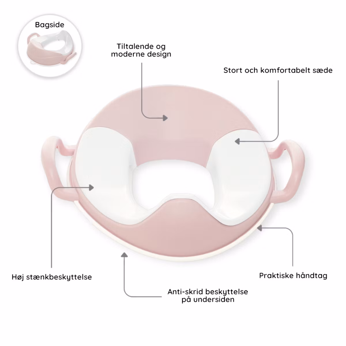 Det almindelige toilet kan virke stort og skræmmende for børn, men vores børnevenlige toiletsæde gør toilettet mere indbydende og egnet til dem. Sammen med vores skønne skammel bliver både håndvask og toiletbesøg nemmere og sjovere.