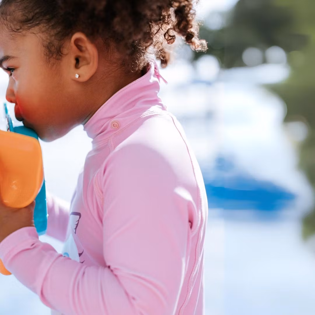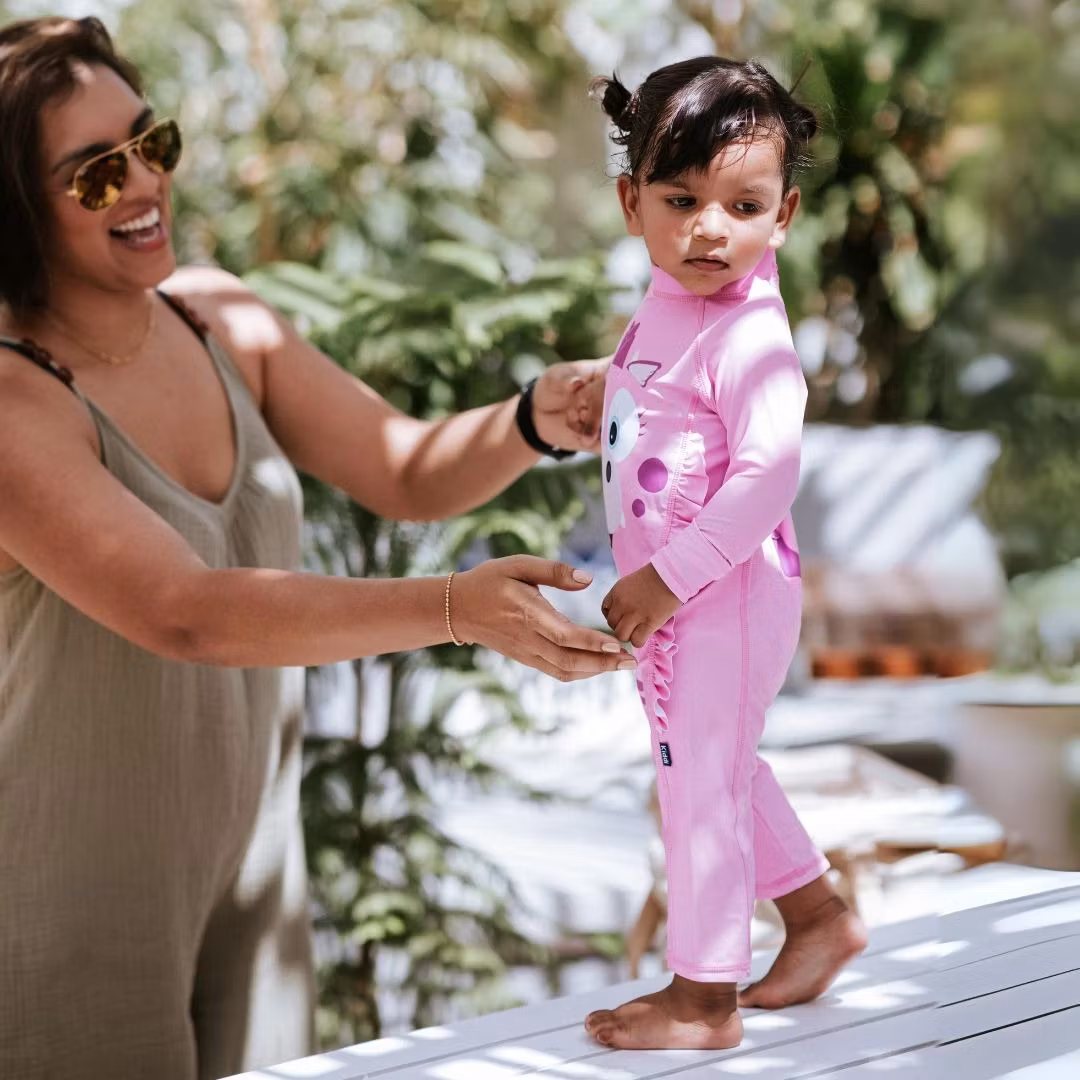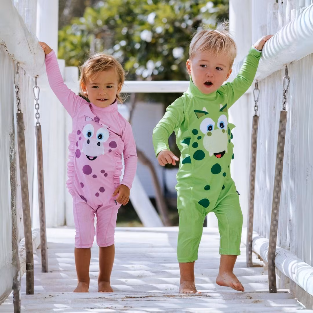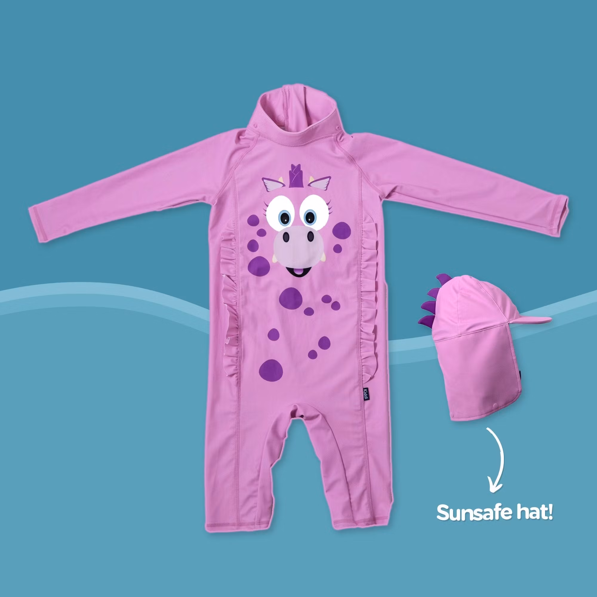 Vores flotte UV-dragter fra My Carry Potty leveres sammen med en matchende solhat. Dragten er designet til at beskytte barnet optimalt mod solens farlige stråler – både under svømning og leg på stranden. Solbeskyttelsesfaktoren er 50+ UPF, hvilket blokerer 98 % af solens skadelige stråling. Badedragten har lange ærmer og ben, der går ned under knæet. Den leveres også med en solhat med et solidt skyggevisir, der både beskytter ansigtet og den sarte nakke.